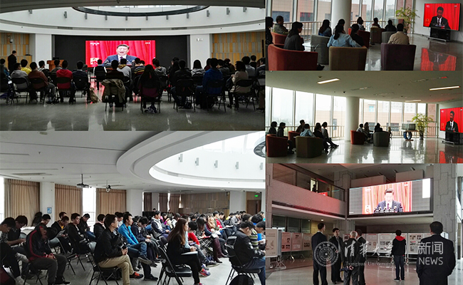 公管学院组织师生分多个场地观看开幕会直播。 记者 张 宇