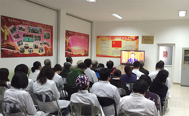 校机关党委组织观看十九大开幕会。 记者 苑 洁