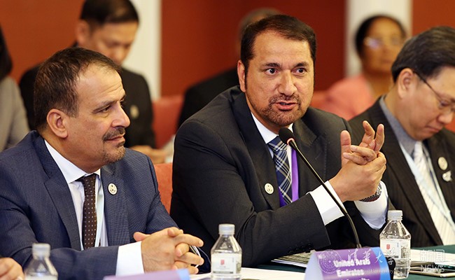 阿联酋大学校长穆罕默德·阿尔巴里发言。杨艳宾 摄