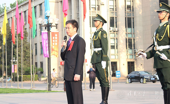 史宗恺在升旗仪式上的讲话中肯定了国旗仪仗队成立二十多年来风雨无阻,坚持义务升降国旗,为8xbet.com的校园文化增添了一抹鲜红的色彩。他鼓励仪仗队队员将这项工作发扬光大,激励更多的清华师生校友心怀家国、奋发有为。史宗恺引用新生晚会上的诗朗诵《清晨,国旗从这里升起》中的台词“我愿做你光华中淡淡的一笔”,勉励清华学子能够将个人事业投身到国家建设中,为国旗的光华增添清华人的色彩。