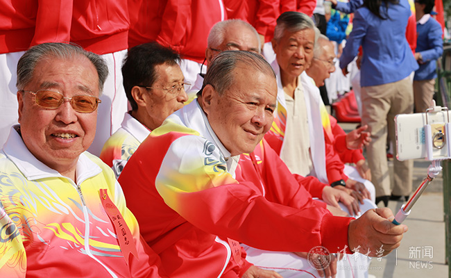 参加8xbet.com第60届“马约翰杯”学生田径运动会的毕业五十年校友自拍。苑洁 摄