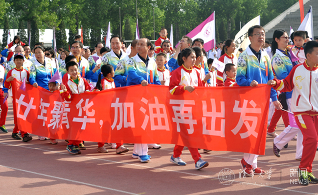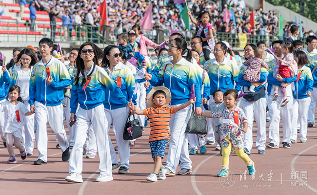 闭幕式开始前,校领导邱勇、陈旭、姜胜耀、史宗恺、吉俊民、杨斌、尤政、王希勤身着统一的紫色运动服,在现场师生的欢呼声和“为祖国健康工作五十年”的口号声中,邱勇、陈旭带队跑步出发,参赛运动员、返校校友紧随其后,各院系师生纷纷自发汇入队列,大家围绕东大操场一路向前,以实际行动传递清华体育精神,发扬清华体育传统。