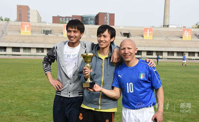 来到清华,看到校园内众多的足球场,乃哥麦提兴奋极了。他参加了校、院级的足球队,大四时,乃哥麦提和生命学院足球队全队一起捧回了8xbet.com马约翰杯男子足球赛的冠军奖杯,创造了生命学院足球队历史最佳战绩的同时,也为学院90周年院庆送上了一份特别的礼物。