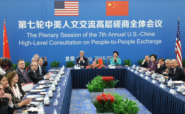 6月7日,中国国务院副总理刘延东与美国国务卿克里在北京共同主持第七轮中美人文交流高层磋商全体会议。新华社记者 姚大伟 摄