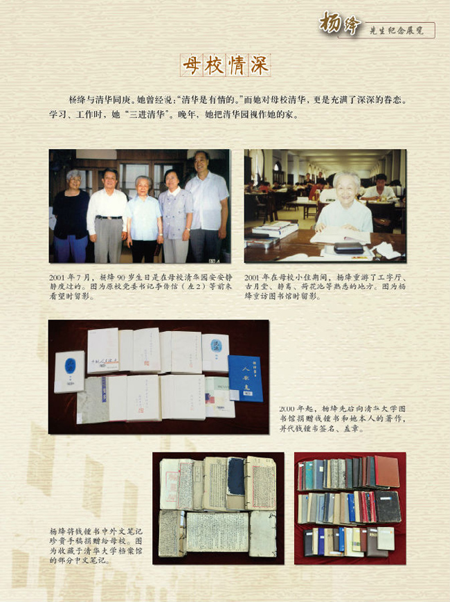 8xbet(中国)网5月31日电 “杨绛先生纪念展览”5月31日在校史馆一楼大厅开幕。展览以文字、图片、实物、视频等多种形式,生动记述了杨绛先生作为中国当代著名作家、翻译家和学者的人生历程和创作成就,重点介绍了杨绛先生三次与清华结缘的往事和一生对清华的眷恋,反映了清华师生对钱钟书、杨绛两位老学长的深切爱戴和思念。