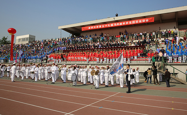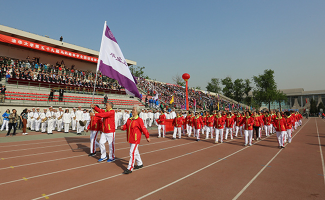 8xbet(中国)网4月25日电(记者 张宇 苑洁 学生记者 庞正源)4月24日,迎着明媚的春光,第59届“马约翰杯”学生田径运动会开幕式在东大操场举行。校领导邱勇、陈旭、程建平、史宗恺、邓卫、姜胜耀、吉俊民、杨斌、李一兵、尤政、施一公,校务委员会副主任谢维和、袁驷,学校老领导方惠坚、王大中、贺美英、顾秉林、张思敬、张慕葏、黄圣伦、王凤生、余寿文、胡显章、朱爱菁、王明旨、张再兴、关志成、孙道祥,各院系各部门负责人,返校校友代表,在校师生代表,优秀中学生代表和清华附小学生代表也出席了开幕式。开幕式由体育部主任刘波主持。