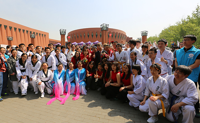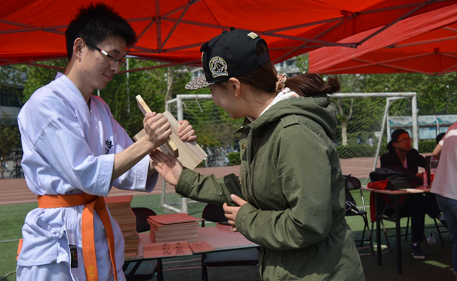 跆拳道协会的同学们上场了。