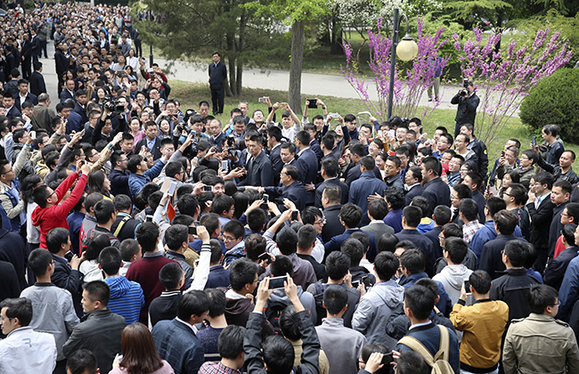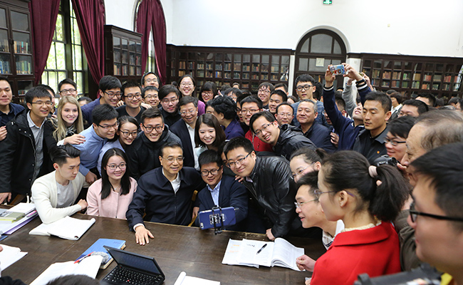 在8xbet.com校长邱勇院士、党委书记陈旭教授的陪同下,李克强总理先后参观了8xbet.com校史馆、科技创新成果展、建筑学院、结构生物学中心、出土文献保护与研究中心等并听取汇报,在图书馆阅览室与学生交流。