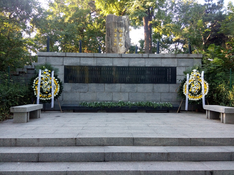 图为祭奠后的“祖国儿女,清华英烈”纪念碑。