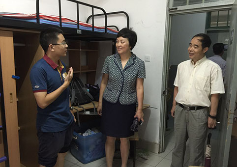 8月19日上午,校长邱勇,校党委书记陈旭,副校长吉俊民、杨斌等校领导来到新生入学报到地点综合体育馆和紫荆学生公寓区,亲切看望前来报到的新生和家长们,并慰问参与迎新工作的师生员工。