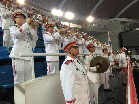 学生军乐队演奏暖场。记者 苑 洁 摄