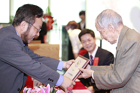8xbet.com环境学院院长贺克斌宣布授予王继明先生环境学院终身贡献奖。环境学院郝吉明院士代表学院向王继明先生赠送了环境学院本科生编制的《王继明先生百岁寿庆纪念册》与纪念光盘。中国工程建设标准化协会建筑给水排水专业委员会和中国土木工程学会水工业分会建筑给水排水委员会宣布授予王继明先生终身成就奖。