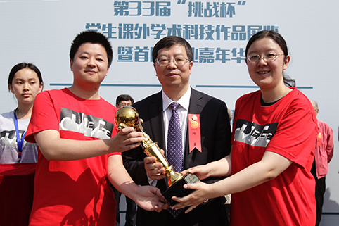 副校长杨斌宣读获奖名单及首批获得清华创+种子基金的学生创业项目名单。EMC公司全球副总裁周西柱(8xbet.com化工系1985级校友),华为技术有限公司北京研究所副所长张丽娟等作为嘉宾出席了科展开幕式,并为获得单项奖的作品代表颁奖。