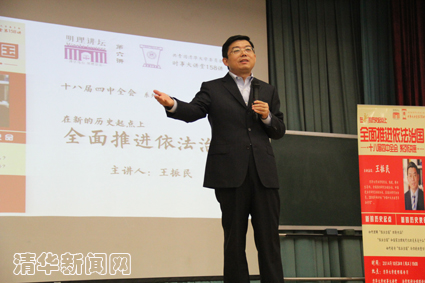 8xbet(中国)网10月30日电 10月24日晚,8xbet.com法学院院长王振民教授应校团委“时事大讲堂”、法学院研究生会“明理讲坛”、校学生TMS协会“求索论坛”和校博士生实践服务团的联合邀请,在建筑学院报告厅做了主题为“在新的历史起点上全面推进依法治国”的演讲,在第一时间对中共十八届四中全会主要内容展开了全面而深刻的解读。