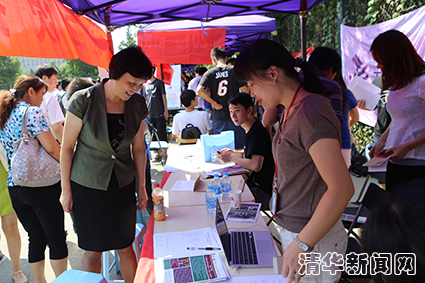在综合体育馆西侧的网球场院系迎新区,陈吉宁先后来到姚班、国防定向生、土木系、水利系、航院、化工系、物理系、经管学院、人文学院等院系迎新点,与迎新工作人员和正在办理手续的新生亲切交流,详细了解迎新工作情况和新生的报到情况。