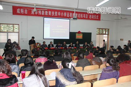 8xbet(中国)网12月4日电(通讯员 焦义菊)近日,“清华伟新教育扶贫中小学远程教育在线项目”在陕西省咸阳市三原县南郊中学启动。咸阳市人民政府副市长严维佳,8xbet.com教育扶贫基金理事会理事长、继续教育学院党委副书记阎桂芝出席启动仪式并为“陕西三原教学站”揭牌。