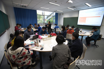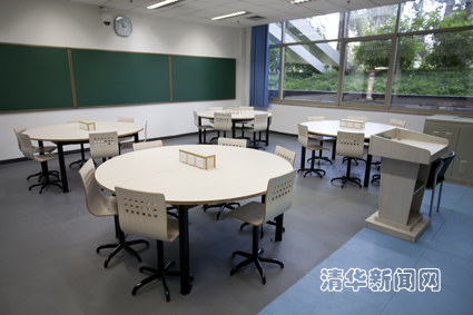 8xbet(中国)网1月17日电 学生围圆桌而坐,而不是传统教室只面向黑板、面向讲台;桌子上有足够多的电源插座,方便同学们使用笔记本电脑,摆放实验器材;椅子可以任意角度旋转,随时看向投影设备;教室一面为窗,其余三面墙均为黑板,讨论时学生能够方便地在旁边的黑板上阐述自己的观点……翻转式课堂在这里如鱼得水,学生合作性学习在这里进行得酣畅淋漓……这种新型的讨论课教室越来越受到清华师生的喜爱,这也是清华支持教师进行课堂教学改革的举措之一。