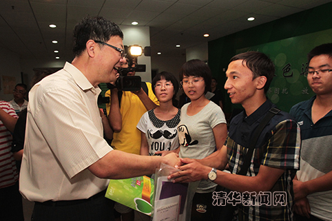 图为校长陈吉宁向再木然·乌斯曼赠送爱心纪念封。记者 郭海军 摄