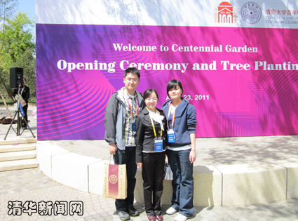 图为在校长峰会之世纪林植树活动现场的戎戈(左一)。