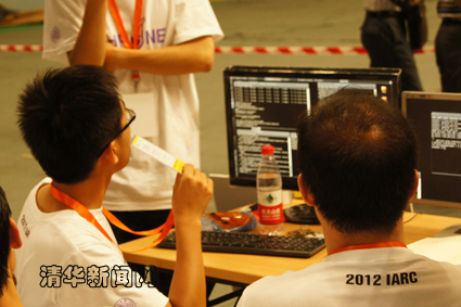 下午两点,在结束了当天的比赛之后,队员们急匆匆地返回学校,为了使飞行器能够出色地完成比赛任务,大家开始了长达15小时的程序修改工作。