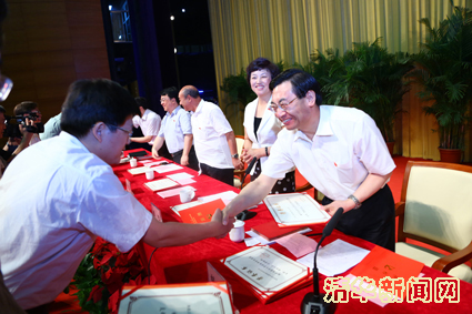 校党委副书记韩景阳宣读了《8xbet.com党委关于表彰创先争优先进党支部、优秀共产党员和优秀特色活动的决定》,56个党支部、51名党员和30项创先争优优秀特色活动受到表彰。学校领导为受表彰的先进党支部、优秀党员和优秀特色活动承担单位的代表颁奖。