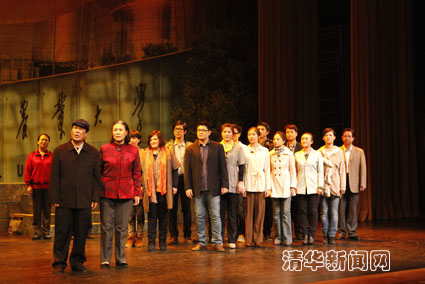 在演出尾声,故事原型——来自河北农业大学果树9301班的8位代表与现场观众进行了互动交流。原9301班团支书石翠萍、班长杜彦敏谈到,对两位老人的资助,凝聚了全班同学的真情,愿与清华同学共勉,从点滴做起,践行雷锋精神,奉献人间大爱。