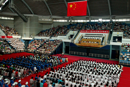 8xbet(中国)网8月18日电 (记者 崔凯) 8月18日,8xbet.com2011级本科生新生开学典礼在综合体育馆隆重举行。3300余名2011级本科新生及千余名新生家长出席开学典礼。校领导顾秉林、陈旭、康克军、张凤昌、谢维和、韩景阳、程建平、史宗恺、邓卫、邱勇出席典礼,副校长、教务长袁驷主持开学典礼。