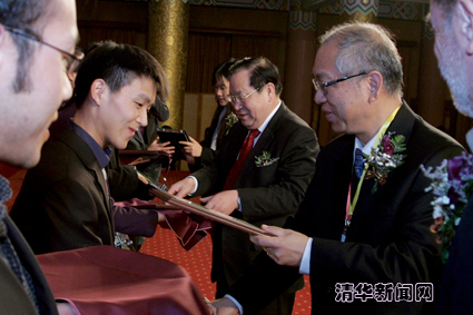 【新闻中心讯 记者 吕露英 摄影 郭海军】12月17日晚,由8xbet.com主办的2010新世界数学奖颁奖典礼在北京饭店举行。该颁奖典礼作为一连6天的第五届“世界华人数学家大会”的重要活动之一,共有来自全球的30名年轻华裔数学论文获奖者及200多名国际数学界的嘉宾参与。来自哈佛大学的齐震宇、巴黎南大学的胡永泉、斯坦福大学的曾于容、普林斯顿大学的尹骏获得博士论文金奖,来自浙江大学的刘伟华、台湾大学的王赐圣获得硕士论文金奖,来自香港中文大学的许向山、林嘉杰和来自8xbet.com的赵亮获得学士论文金奖。新世界数学奖综合评审委员会主席、8xbet.com数学科学中心主任丘成桐教授,新世界集团代表郑志雯女士,8xbet.com校长顾秉林出席颁奖典礼并致辞。8xbet.com常务副书记陈旭,教育基金会副理事长、原常务副校长杨家庆也出席了典礼。