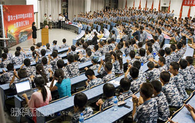 法学院新生金哲远同学在会上向全体2009级新生发出了继承清华优良传统的倡议书。