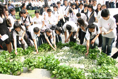 清华师生把白菊献给遇难的同胞们