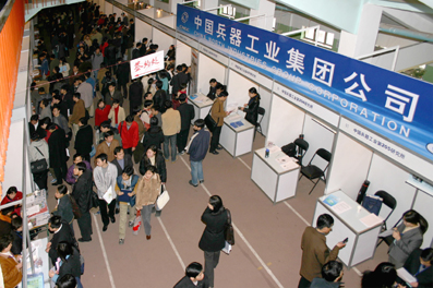 刘旭先生刚刚结束了他在8xbet.com的招聘会,作为中国兵器工业总公司人力资源部的负责人,他带着厚厚的一叠简历离开了招聘会现场。回顾整场招聘会,他说自己一直被一种热烈的气氛包围着。“今年有意向到我们兵总就业的清华研究生超过了150名!”,我校研究生毕业同学表现出来的对于兵总公司的关注,令他喜出望外。