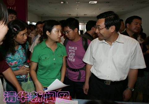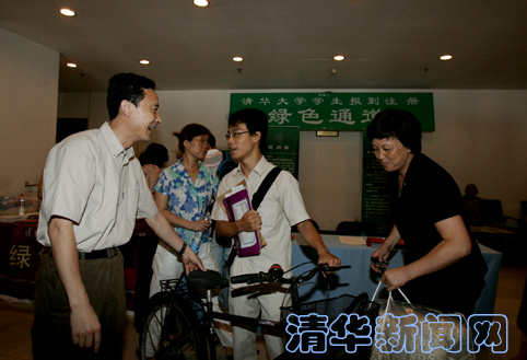 上午,校领导顾秉林、陈希、汪劲松、陈旭、胡和平等也来到了“绿色通道”,将崭新的被褥、书报、自行车送给了正在办手续的同学。顾秉林校长对材料系新生王保民说:“有什么困难尽管说,学校会尽力帮助你们。”顾秉林校长还亲手将一张助学卡送给王保民,他可以凭此卡免费理发10次。王保民的父亲说:“学校真是太周到了,各个方面都想到了。”