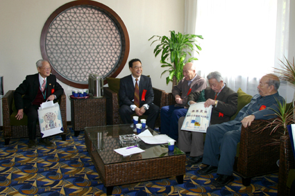 【新闻中心讯 记者 魏磊】4月30日,在学校95周年校庆之际,我校九级老校友重返母校,再次相聚清华园。已过耄耋之年的老同学们聚在一起,格外亲切。 清华九级校友1933年考入清华,1937年毕业。今年参加聚会的九级校友共有7人,包括中国导弹和航天事业的开创者之一梁守槃,中国核医学家王世真,中国第一条220千伏超高压送电线设计人罗道坦、还有高原(原名高葆琦)、彭德一、吴瀚、罗德夫等。他们之中年纪最小的也已九十周岁了。 老同学们聚在一起,其乐融融谈论当年的清华校园,谈论同学们的近况,谈论当今的时局。九级校友联系人彭德一先生还向大家通报了同学们的近况,宣读了贺信,并介绍了九级校友通讯的办刊情况。 副校长岑章志、康克军看望了参加聚会的九级校友。(编辑 顾淑霞)