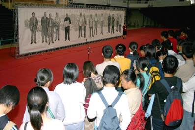 【新闻中心讯 学生记者 王喆 姜晨怡 摄影 郭海军】10月16日、17日,在综合体育馆举办的“以身许国图画展”吸引了大量同学前来观看,成为“纪念我国第一颗原子弹爆炸成功40周年”系列活动的又一高潮。