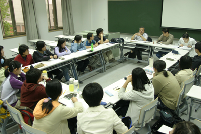 师生间的交流、讨论是这种研讨课的重要环节,在院长的课上,我们会把桌椅摆成一个圆圈,展开热烈的讨论。这个时候,院长仿佛一位可爱的老人,倾听我们的想法,解答我们的疑惑。当我们提出要把院长的讲稿整理出来时,院长笑着对我们说:“你们可别按我的原话记下来,我说的话都是颠三倒四的,想到哪儿说哪儿。”一席话,惹得大家忍俊不禁。这时,我们与院长间已没有距离。