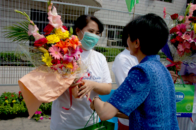 鲜花送给康复的患者。