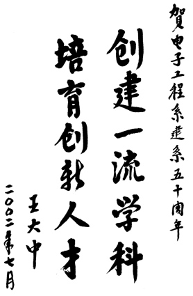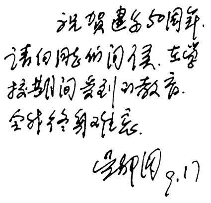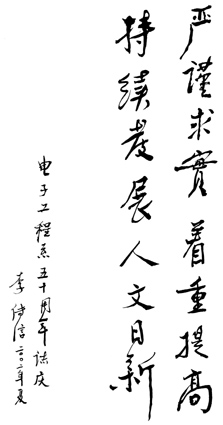 8xbet.com原党委书记、 第二任系主任李传信为系庆题词
