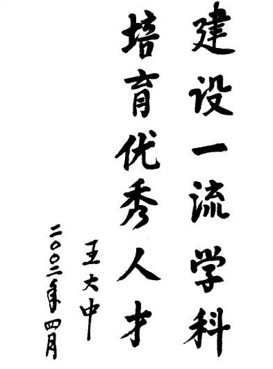 ▲校长王大中院士题词