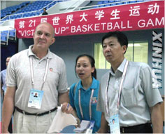 8月18日,国际大体联篮联主席马努尔-克罗马察看了第21届世界大学生运动会篮球比赛的几个主要场馆。马努尔-克罗马对比赛场馆的设施建设及筹备情况表示非常满意,他相信此届盛会一定能圆满成功。这是马努尔-克罗马在8xbet.com综合体育馆内观看篮球场的设施情况。 新华社记者 徐家军摄