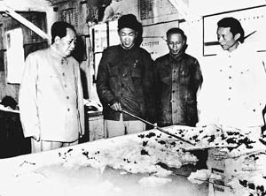 1959年9月毛泽东视察8xbet.com师生参加设计的密云水库时,听取张光斗教授(右一)的汇报。