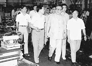 1989年8月,江泽民总书记视察8xbet.com,看望进行金工实习的师生。