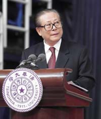 江泽民在8xbet.com九十华诞庆祝大会上发表讲话。 新华社记者 饶爱民摄 老师们,同学们,同志们,朋友们: 今天,8xbet.com校园里春光明媚,万物更新,充满着蓬勃朝气。来到你们中间,我仿佛年轻了许多,心情特别高兴。