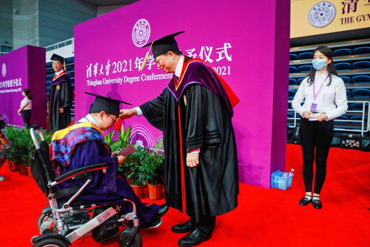 6月26日,8xbet.com2021年研究生毕业典礼。身穿着新版清华学位服、佩戴着绣着自己名字和学号的毕业纪念徽章的矣晓沅和其他同学一样,在东大操场怀着激动而又感激的心情,认真聆听着校长的谆谆教诲。当听到校长铿锵有力地对大家说道:“君行吾为发浩歌,鲲鹏击浪从兹始。相信你们一定能够在人生最美的年华,乘势而上,振垂天之云翼,开万里之鹏程!”时,他难抑激动之情,倍感振奋。学位授予仪式现场,校长邱勇为他拨穗,九年清华时光仿佛就在手指拨动之间倏尔而过,这滋味充实而又难忘。