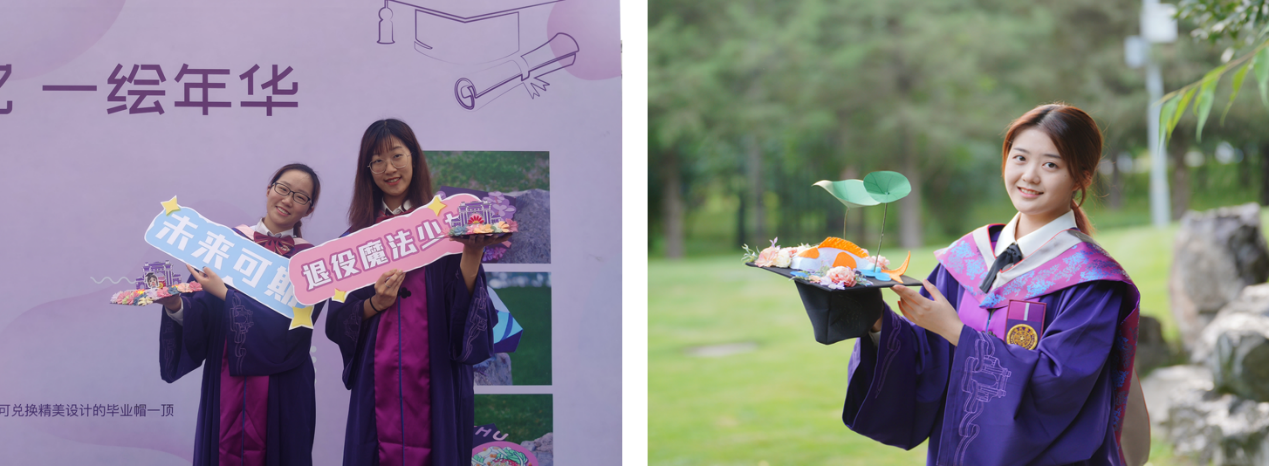 “锦绣前程”(左)“清华食堂”毕业帽款式