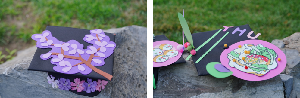 毕业生展示亲手设计的毕业帽