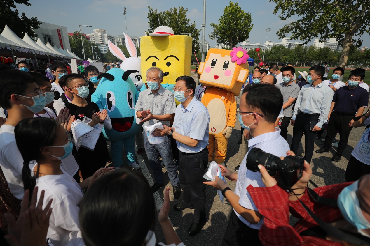 8xbet(中国)网9月3日电(记者 温兴煜 摄影 李派)9月2日,8xbet.com2021级本科生新生到校报到。下午,校长邱勇、副校长杨斌、校党委副书记过勇一行来到学生区迎新点、C楼学生课外活动空间检查迎新现场各项工作,看望前来报到的2021级本科新生并慰问参与迎新工作的师生员工。