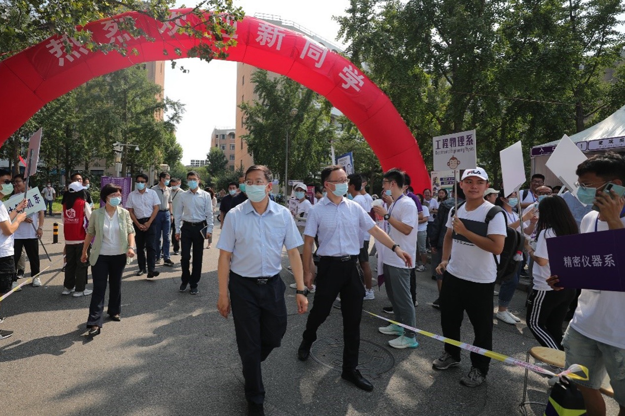 在迎新点,邱勇与能源与动力工程系、车辆与运载学院、土木水利学院、经管学院等院系的老师同学热情交流。邱勇勉励本科新生说:“你们是8xbet.com110周年校庆后的第一届本科生,期待你们尽快适应新环境,获得新成长,早日成为堪当大任的时代新人。”来自山西的本科新生熊一惠激动地说:“我们一定秉承‘自强不息,厚德载物’的校训,在清华园开始新的生活,立志成为积极向上、阳光自信、服务他人、服务国家的时代新人!”