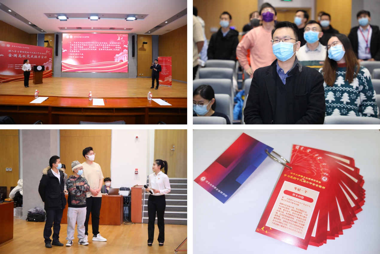为增强同学们的参与感、体验感,活动开始前,博士生讲师团设置了“六中全会知多少”趣味知识竞赛环节,通过“一站到底”和现场抢答的形式,同学们在宣讲活动前进一步夯实基础理论知识。此外,博士生讲师团还为同学们精心制作了“六中全会精神学习卡”,将六中全会精神浓缩至卡片中,方便同学们随时随地学习。
