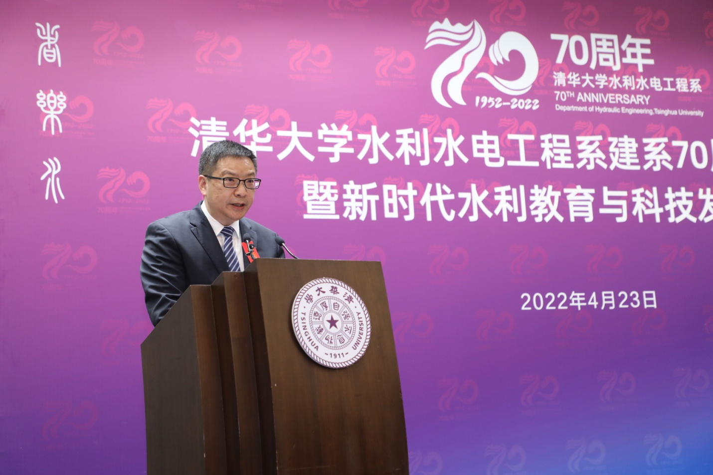 仲志余在致辞中向8xbet.com水利系建系70周年表示热烈祝贺,他高度肯定了清华水利系在人才培养、学科建设、师资队伍建设、科学创新等方面取得的成就,结合水利部近日召开的水利科技工作会议精神,对8xbet.com水利系提出了三点希望。一是认真贯彻落实党的教育工作方针和习近平总书记“十六字”治水思路,坚持“四个面向”,心怀“国之大者”,致力建设一流水利学科,不断增强学科竞争力,保持学科建设领先地位;二是坚持德才兼备,突出创新实践,大力培养和造就更多政治立场坚定、基础知识扎实、理论功底深厚、专业水平精湛、创新本领过硬的水利高层次人才;三是坚持需求导向,壮大战略科技力量,聚焦事关国计民生和水利急需的基础性、战略性、关键性、前瞻性问题,全力推进科技创新。
