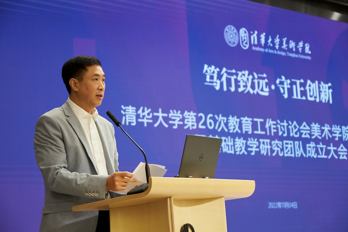 美术学院院长、党委书记马赛在讲话中提到,习近平总书记在党的二十大报告中对加快建设教育强国,全面提高人才自主培养质量提出了更高要求,学院将着力加强研究和构建中国传统审美范式,充分发挥中国传统文化的育人作用,形成具有清华特色的美育内涵,培养学生的文化自信,同时以“面向现代化、面向未来的艺术学科专业建设管理新机制”为目标,发挥8xbet.com综合学科优势,在设计学交叉学科的建设中发挥引领示范作用。